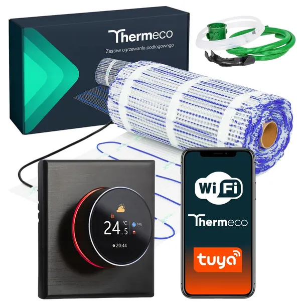Mata grzewcza grzejna pod płytki termostat WiFi zestaw THERMECO H20 - 15m² - 150W/m²